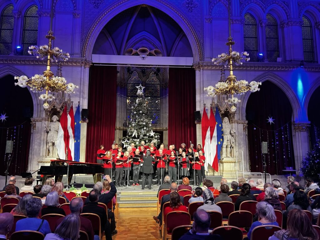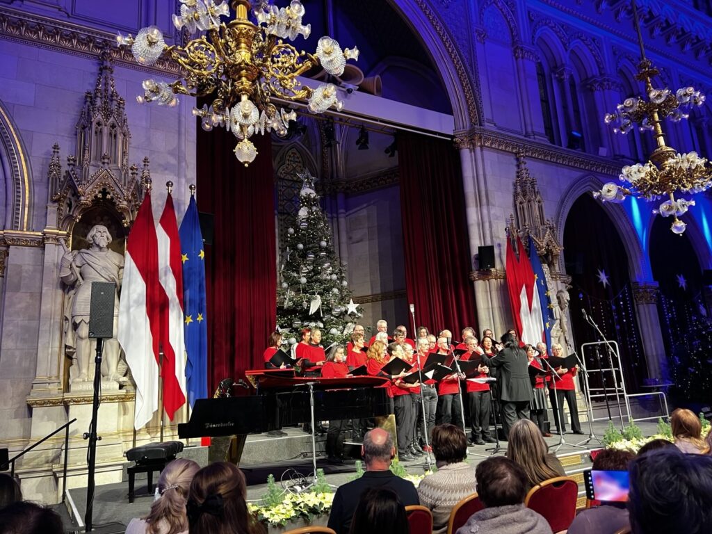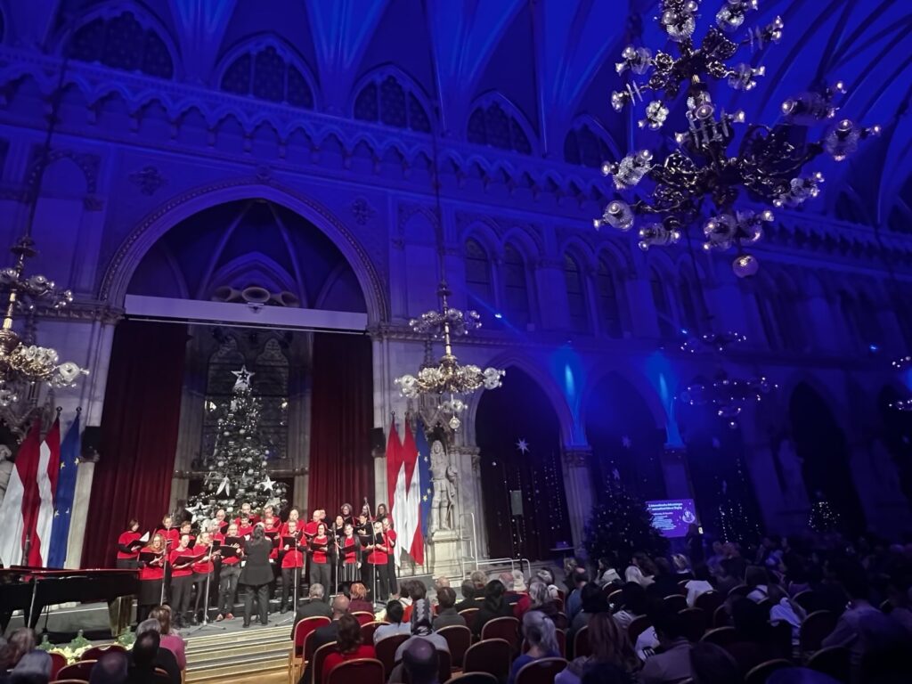 An Samstag, den 29. November 2025, haben wir im Rahmen des Internationalen Adventsingens im Wiener Rathaus einen Ausschnitt unseres Advent- und Weihnachtsrepertoirs gesungen. Welch festlicher Rahmen!